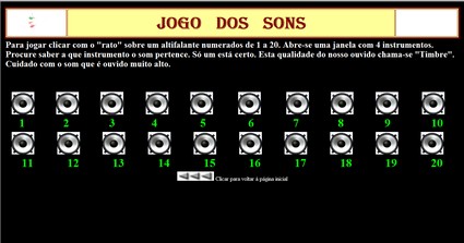 | Jogo on-line para treino de memória com sons | Jogo para descobrir o som dos instrumentos |